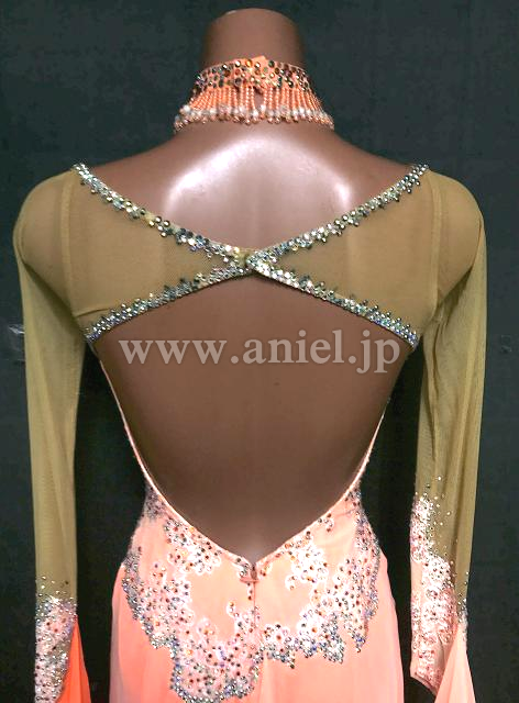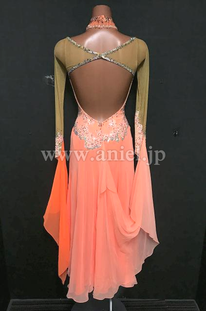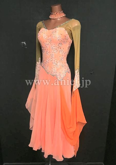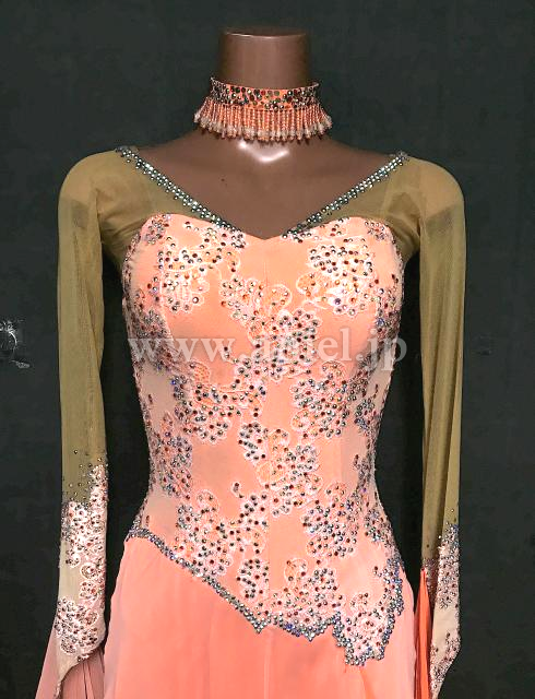 明るいサーモンピンクカラーが綺麗なドレス。