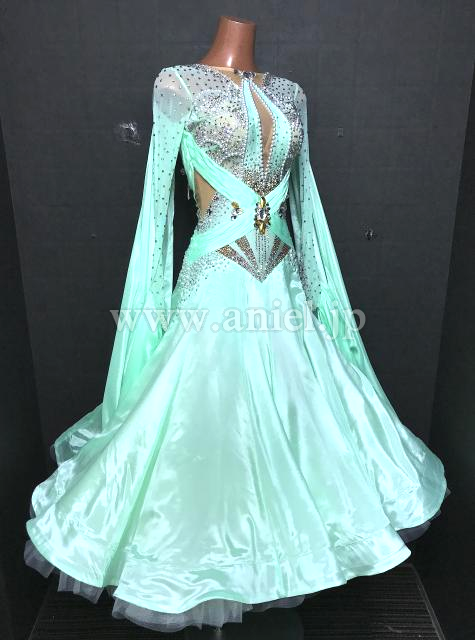 肩から左右に大きく広がるフロートとボリュームたっぷりのAラインスカートがよく踊ります。