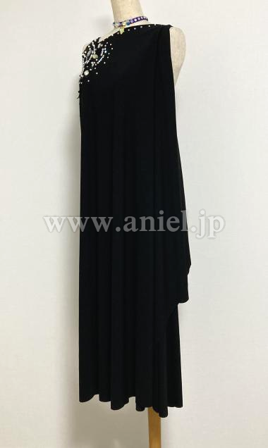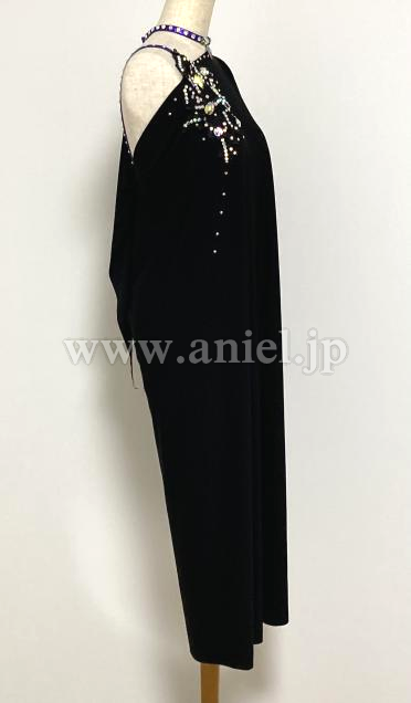 黒モチーフのオーロラストーンがドレスのアクセントになっています。