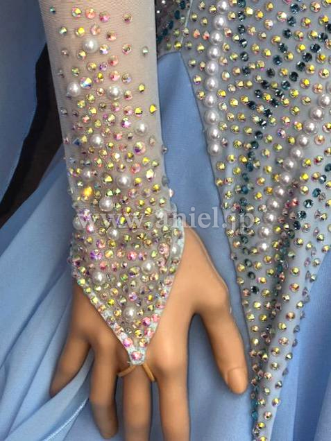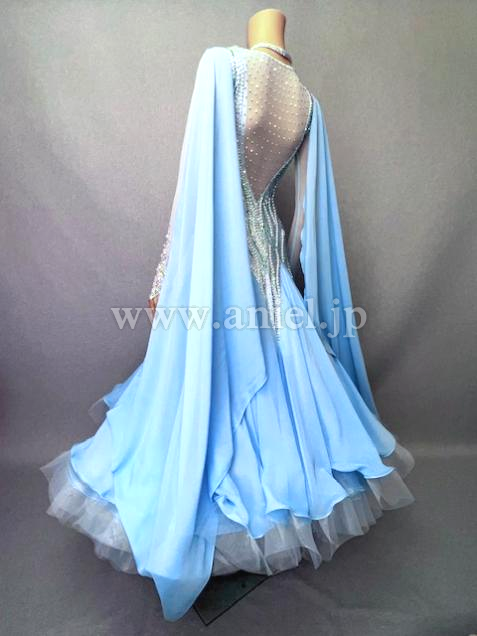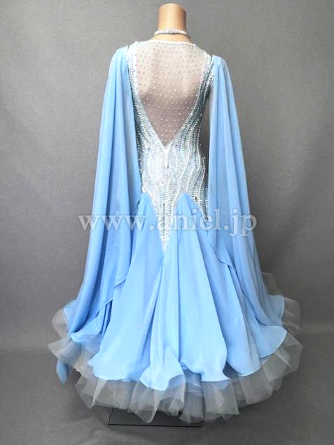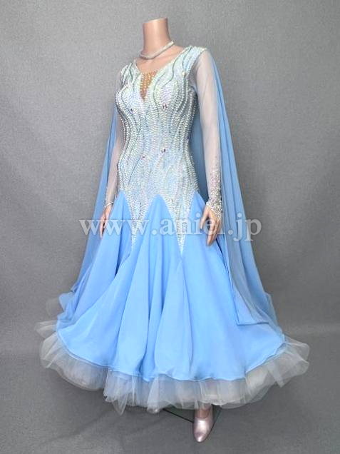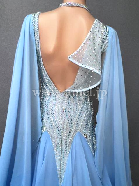 透明感のあるブルードレスに、ラインストーン、パールでより高級感を醸し出したドレス。