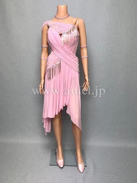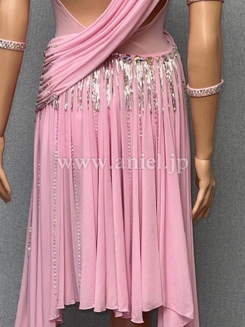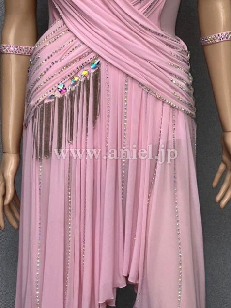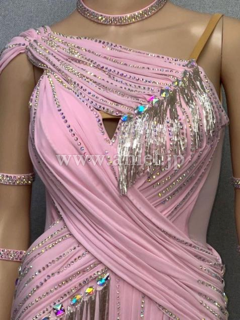 ドレス全体にラインストーンフリンジを入れ、随所にシルバー竹ビーズをあしらっています。