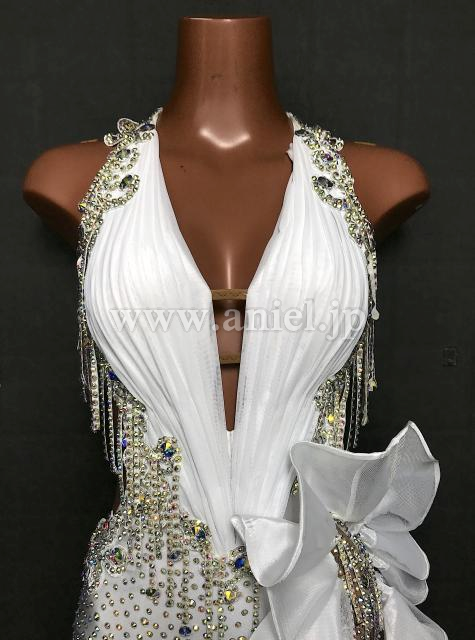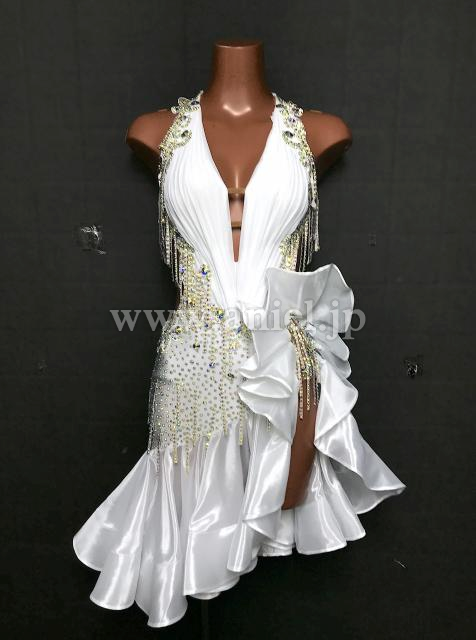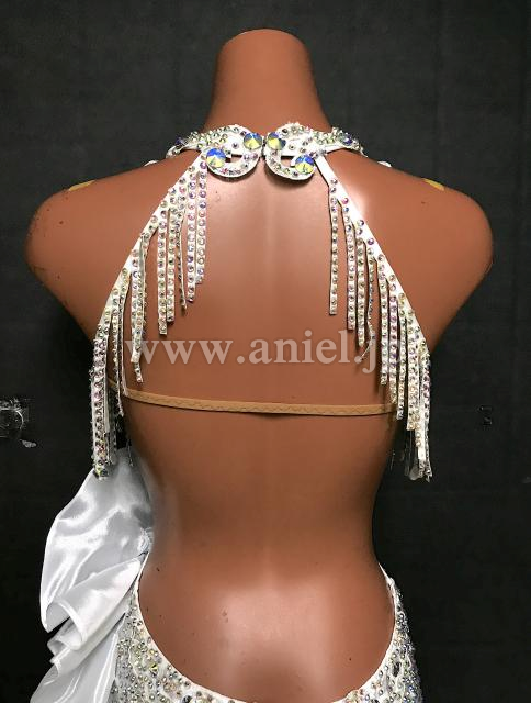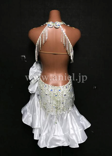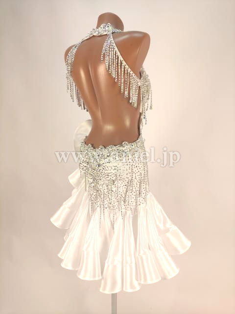 ボディはレース、ストーン、揺れる紐飾りで装飾されています。