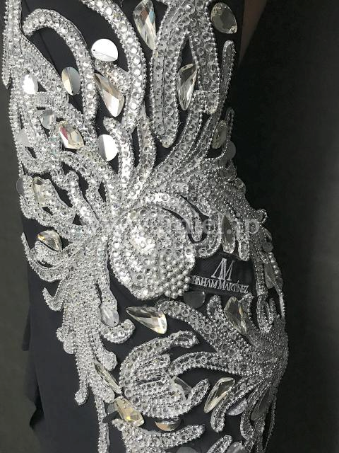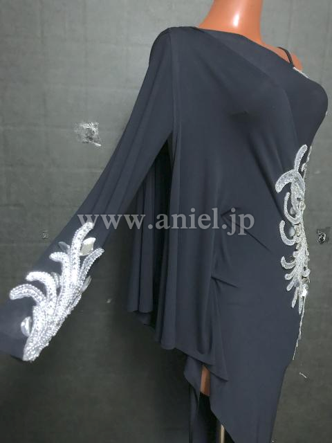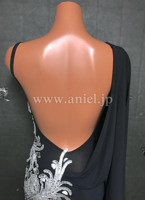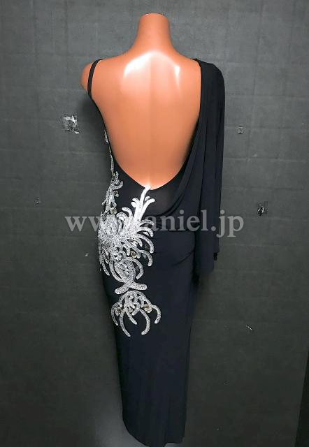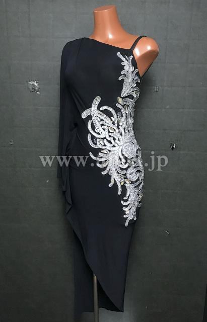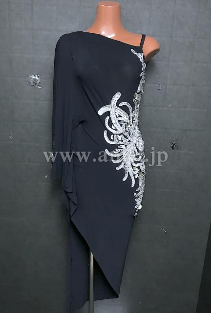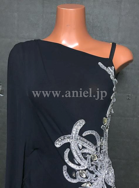 シンプルなブラックの生地にシルバーのモチーフがアクセントとなるデザインです。