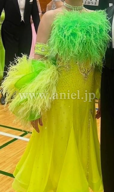胸元、ヒップ、袖にファーがたっぷりの華やかなドレスです。