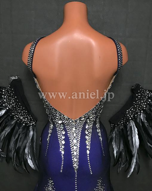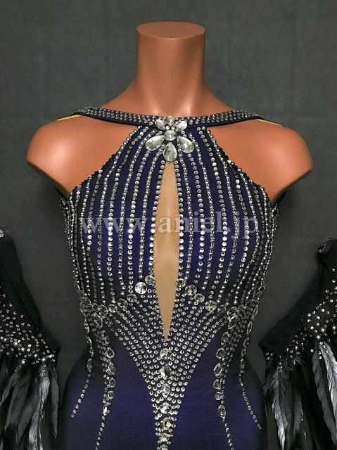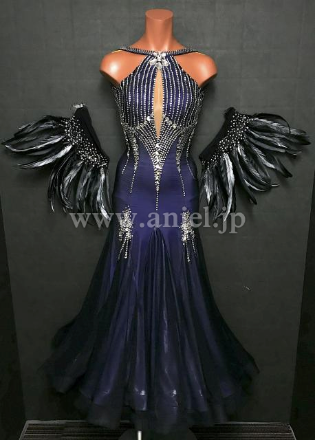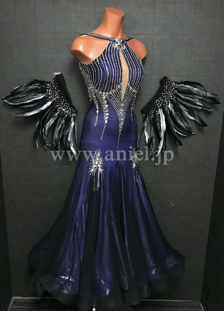 立体羽根の袖飾りがインパクトのあるドレス。