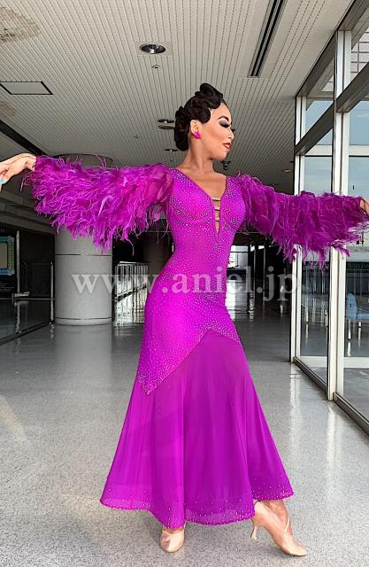 ボディはシンプルなデザイン。インパクトのあるカラーと袖のファーがゴージャスさを出してくれるドレスです。