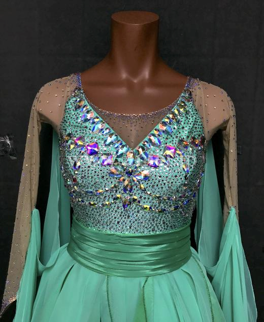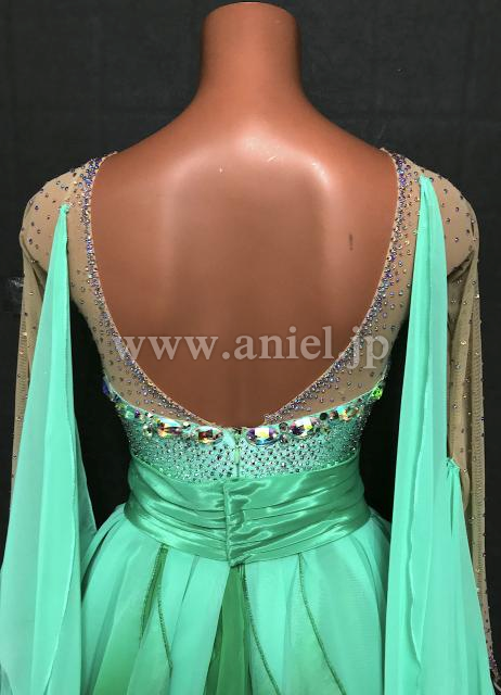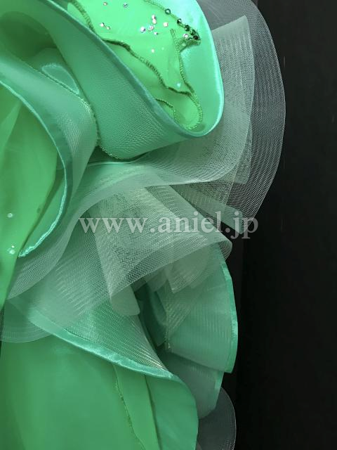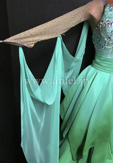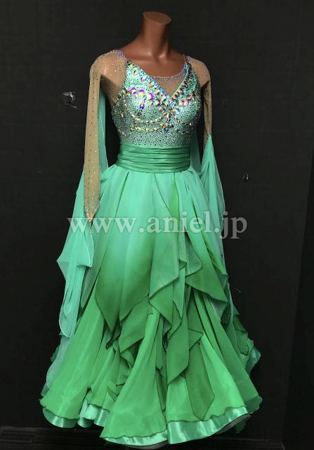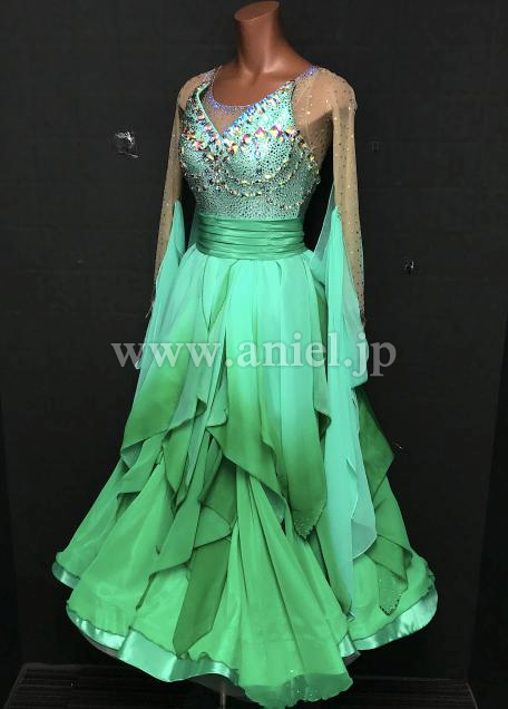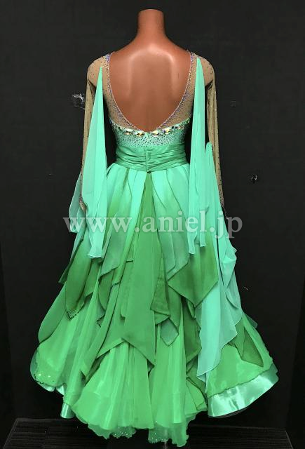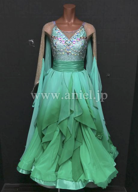 フリルが重ねられたグラデーション生地のスカートが可愛いデザインのドレスです。