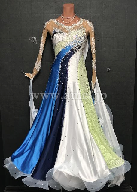 ラインで切り替えられたカラフルなドレスです。