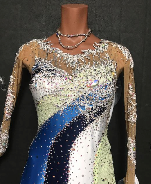 ボディには白のモチーフレースとたっぷりのストーンで装飾され豪華です。
