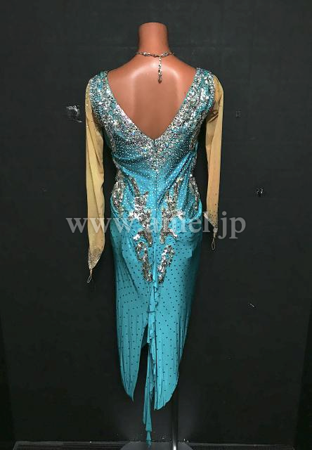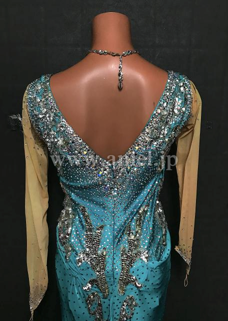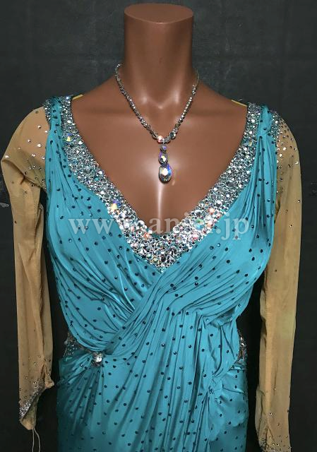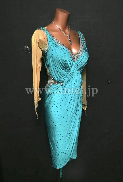 ボディには美しいドレープで袖付きデザインで露出控えめです。