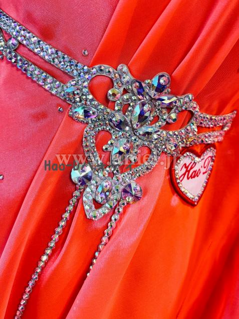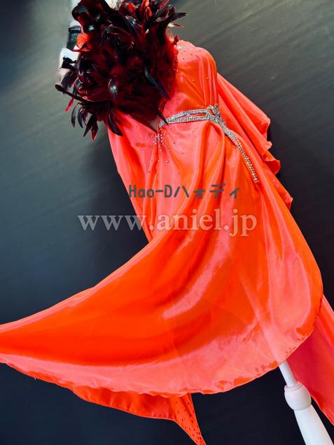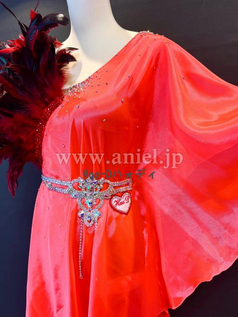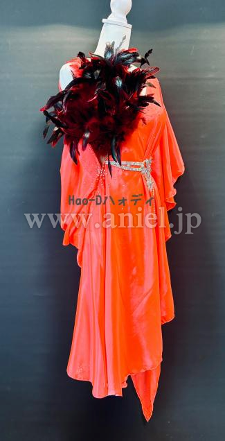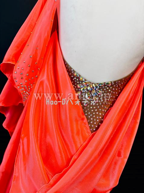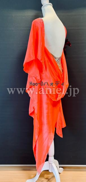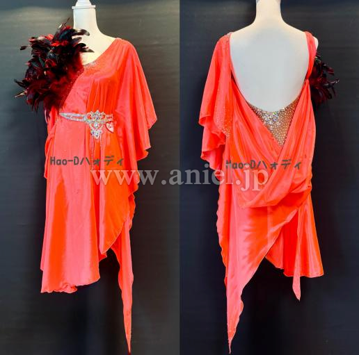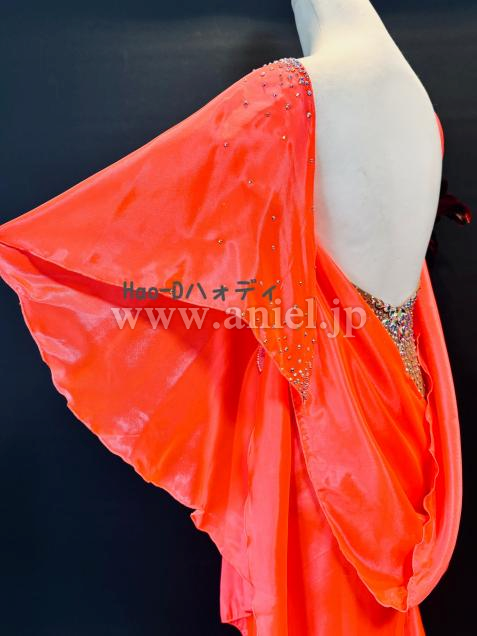 ピンクがかった蛍光ピーチオレンジカラーのドレス