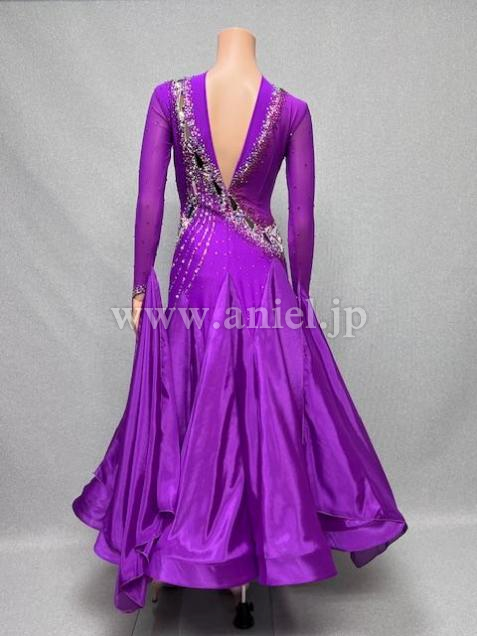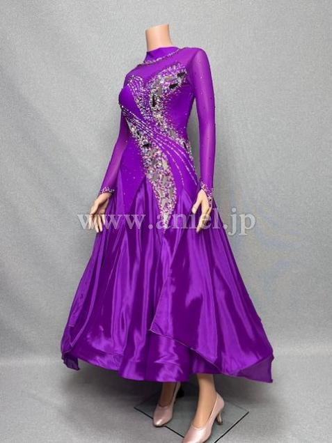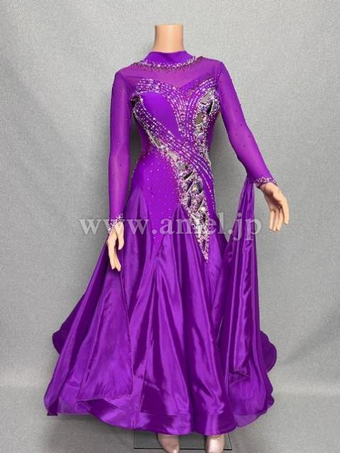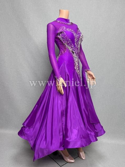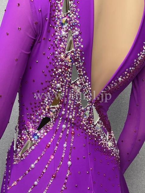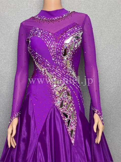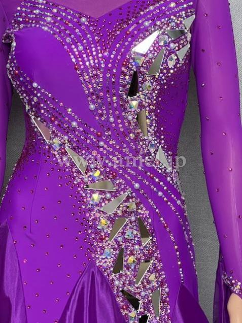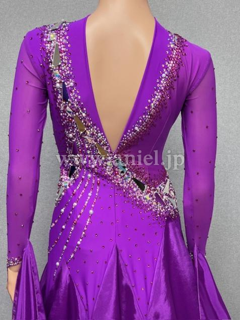 ディープパープル地にミラーストーンや、大小ストーン、パール等をあしらい豪華に装飾された大人なドレス。