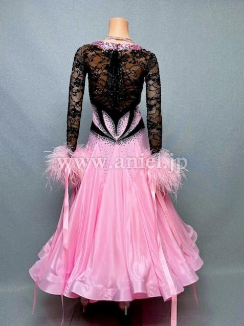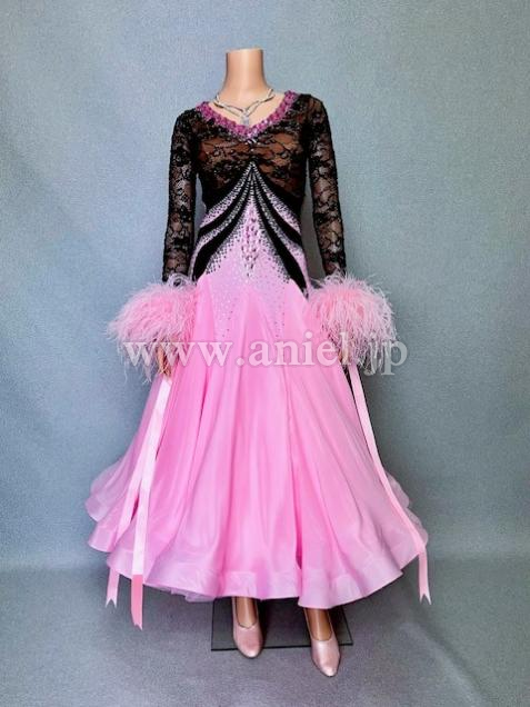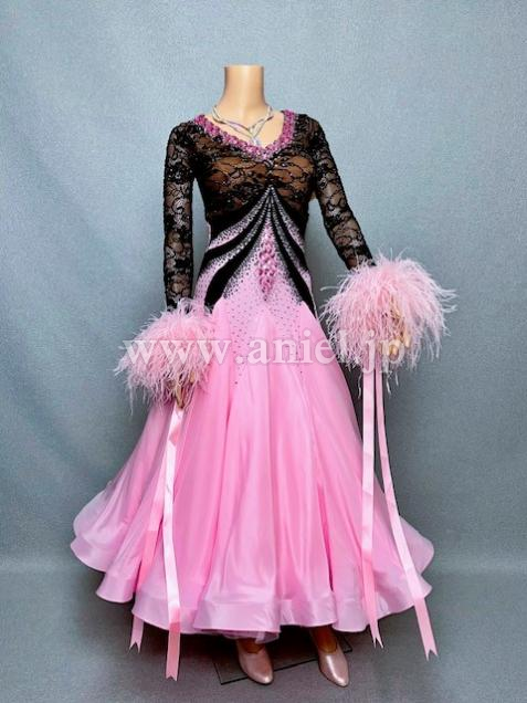 甘いピンクをブラックで引き締めた綺麗なAラインドレス。