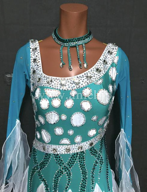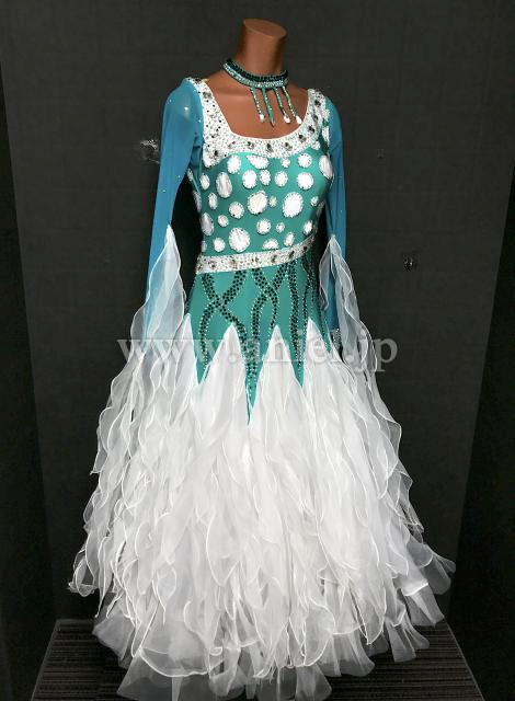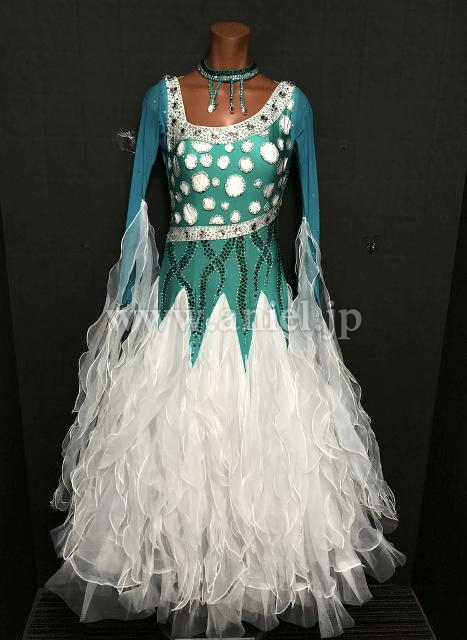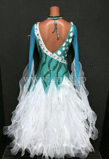 ペパーミントカラーにドット模様がアクセントになっているドレスです。