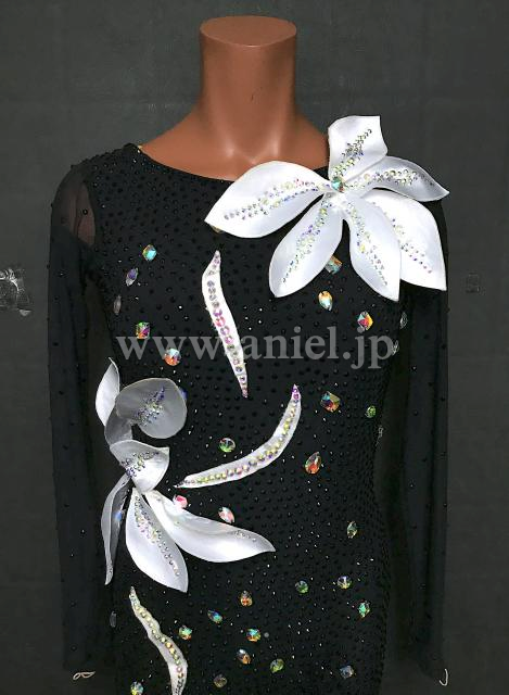 白の大きな立体花モチーフがインパクトがあります。