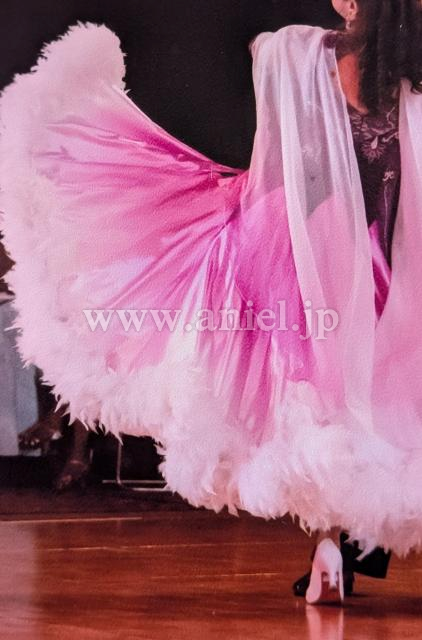 グラデーションのサテンスカートが光ります。