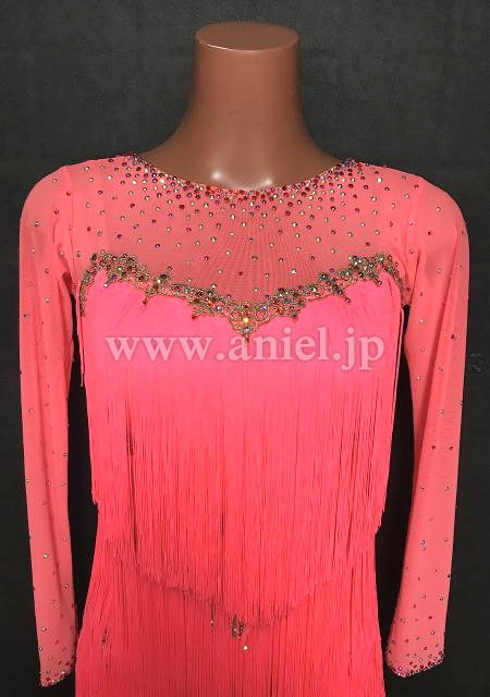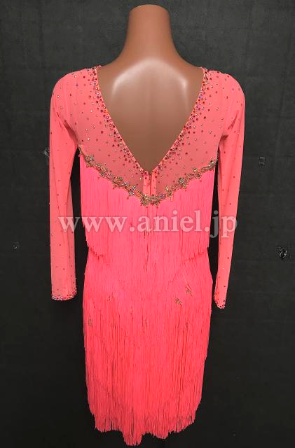 オレンジ味のあるピンクが目立つドレスです。