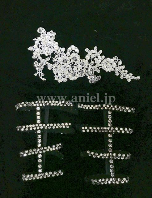 モチーフレース、ビーズフリンジ、立体装飾が施されています。