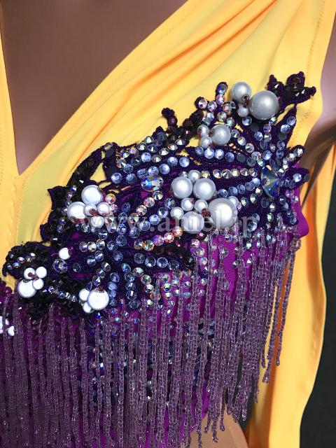 Grand Amourのドレス、全体に散りばめられたストーンとビーズフリンジが非常にエレガントです。