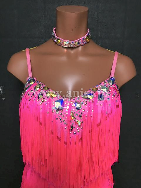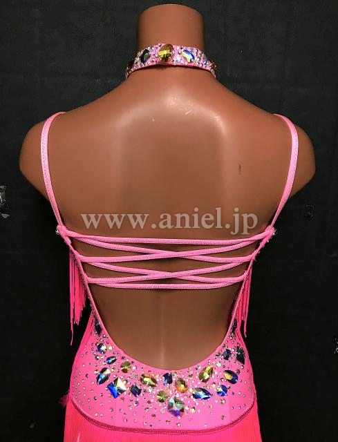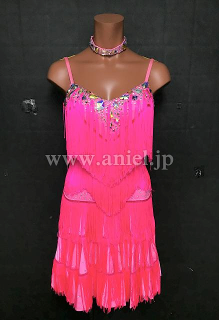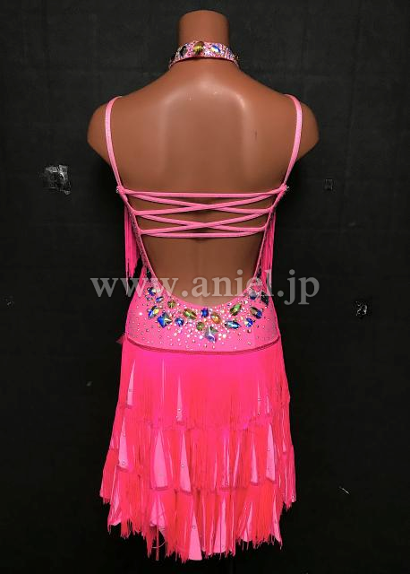 明るいピンクのフリンジが踊るドレス。