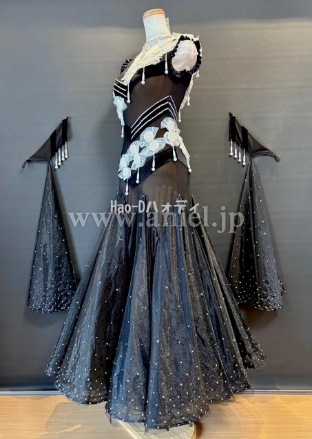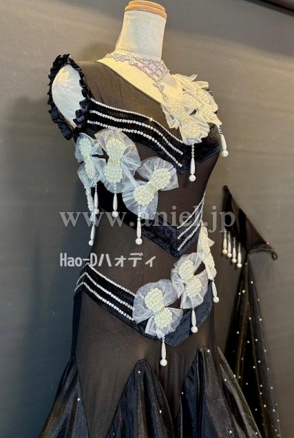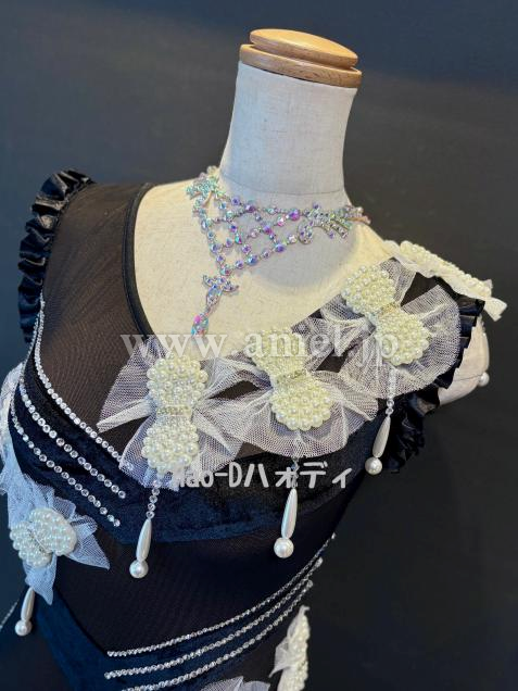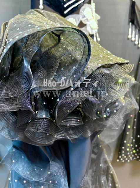 光沢オーガンジー生地のフロートとスカートには、ストーンを全体的に散し、踊りを大きく華やかに見せてくれる