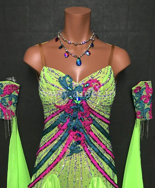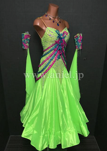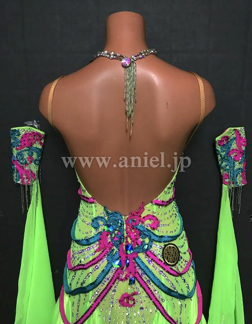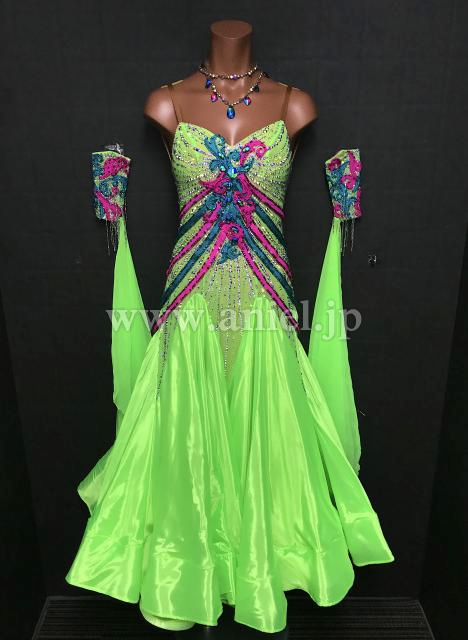 黄緑にジェード・ピンクのリボンラインが印象的なデザイン。