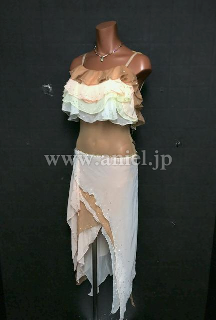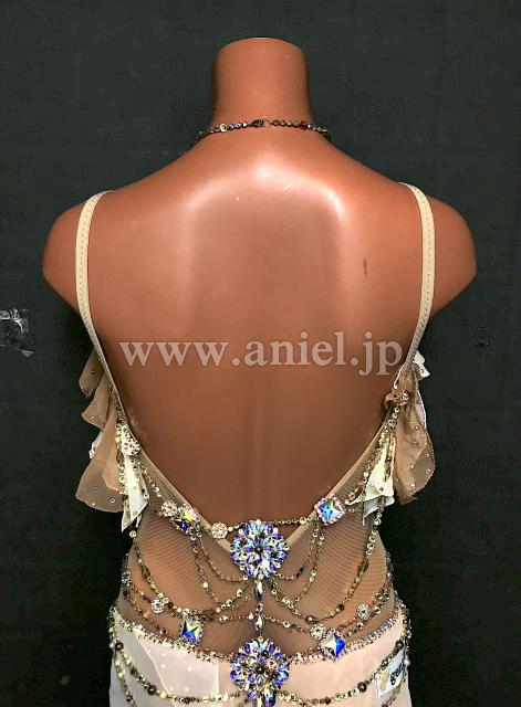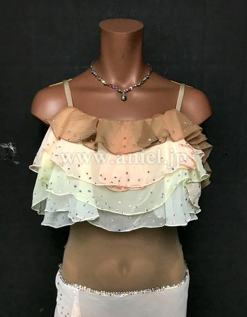 グラデーションベージュのジョーゼットのフリルが上品で柔らかく踊るドレスです。