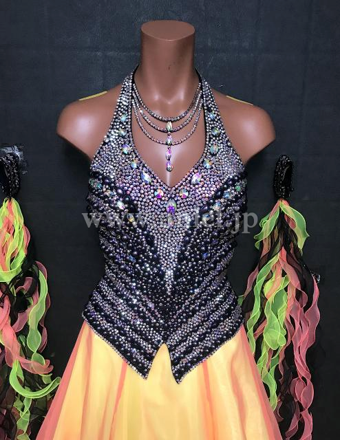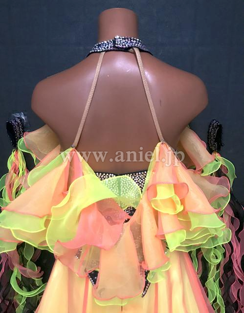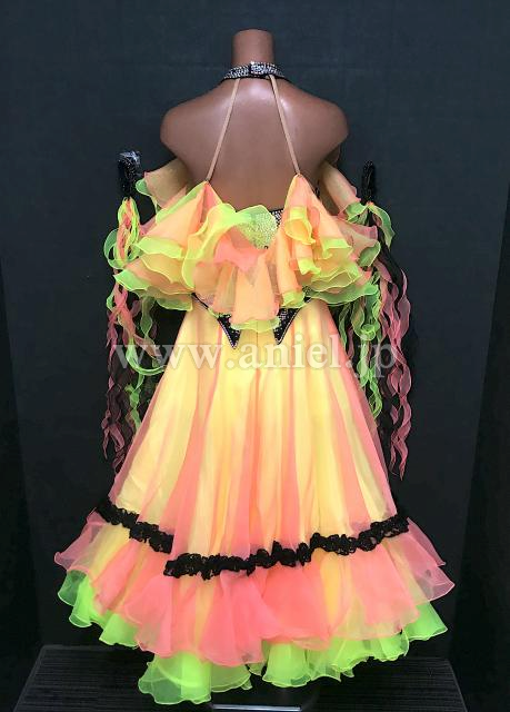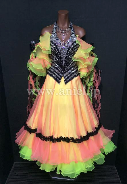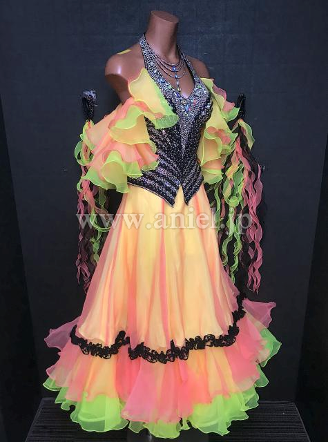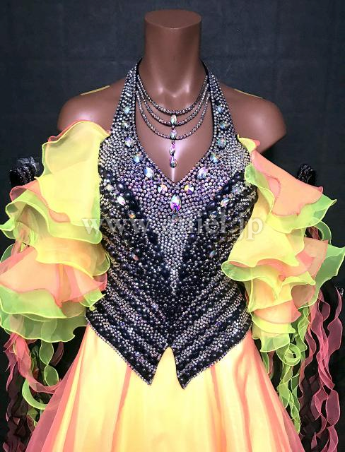 カラフルなスカートとフリルフロートが個性的で目立つドレスです。