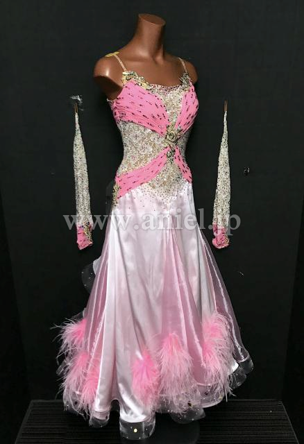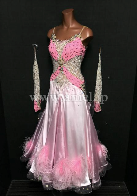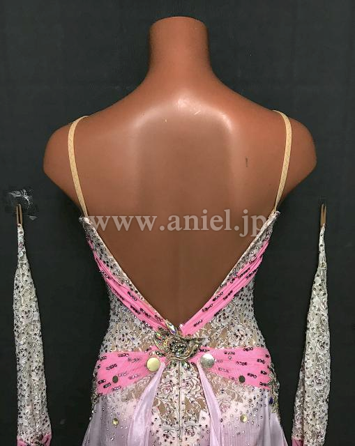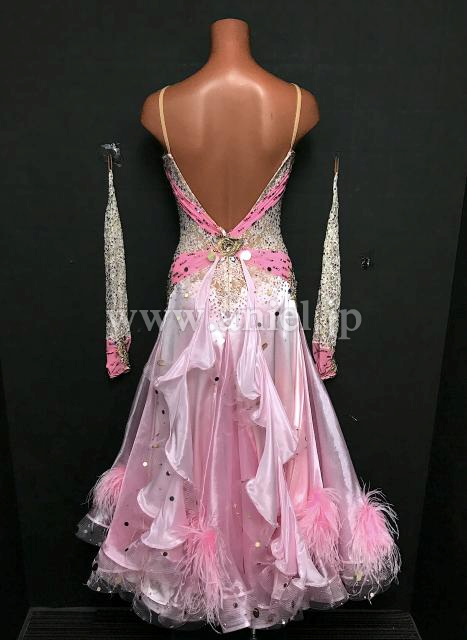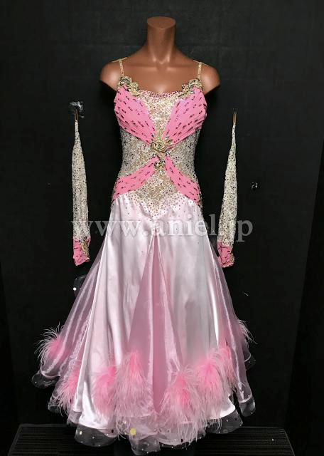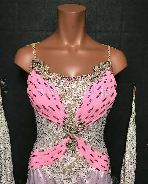 ボディのホワイト薔薇レースが美しくピンクが可愛らしいドレスです。