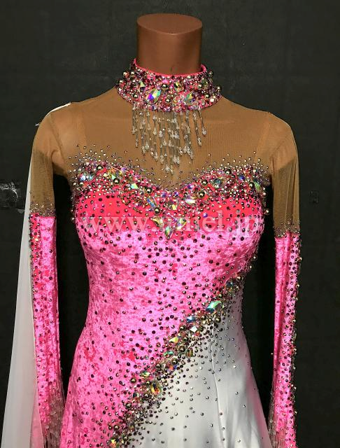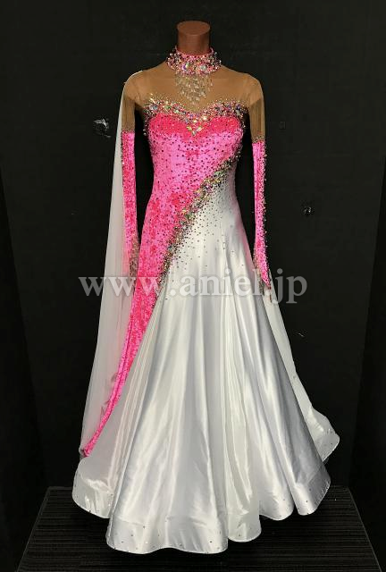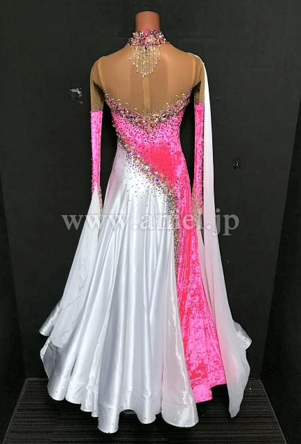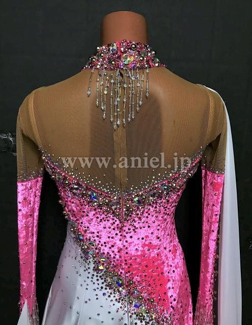 ベルベットのピンクが鮮やかで目立つドレスです。