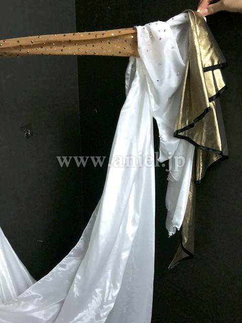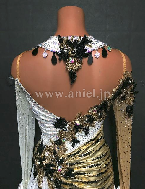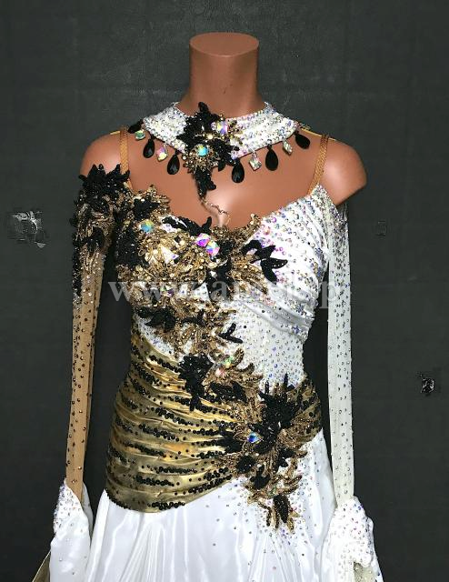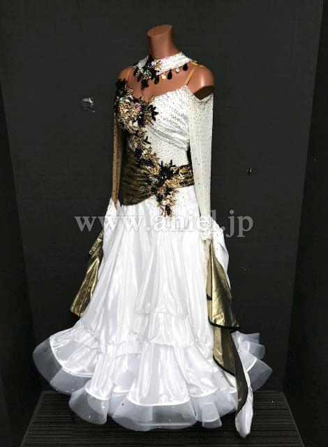白にゴールドのバイカラードレス。