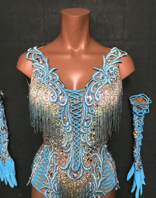 上品なスカイブルーカラーとビーズフリンジが組み合わさり、美しく演出します。