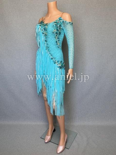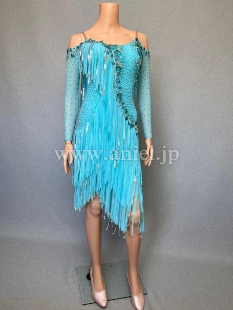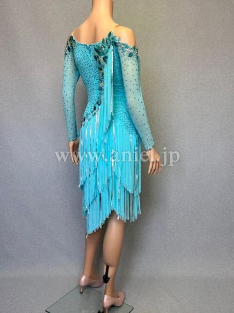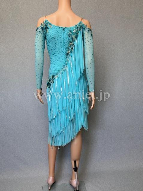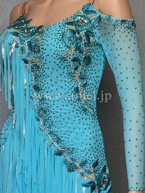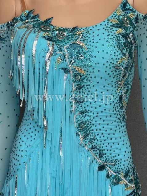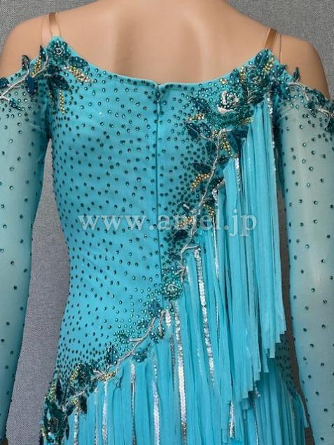 前後ボディから流れるように出たフリンジは、ストレッチメッシュとシルバースパンコールの2種を使用し、非常に軽量に仕立てているため携帯にも便利です。