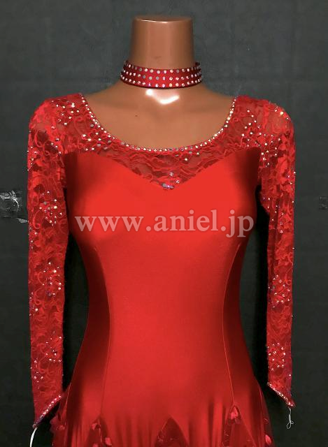 レースの袖、スカートが上品です。