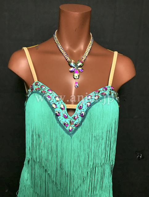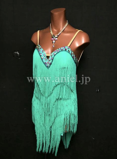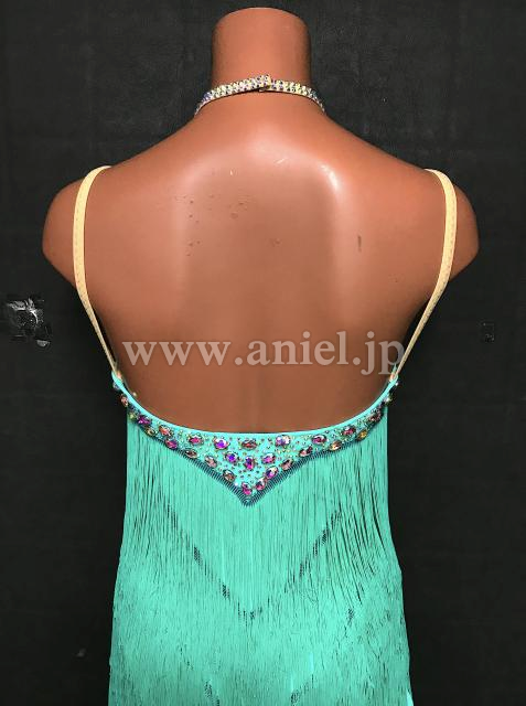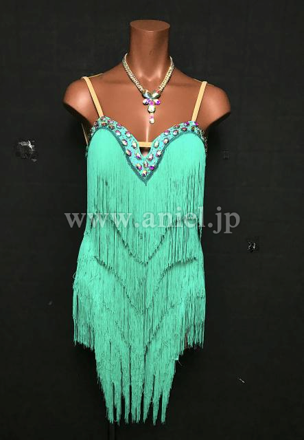 明るい緑のフリンジドレスです。