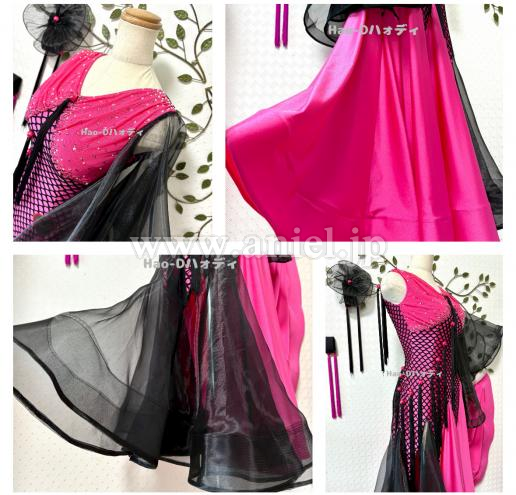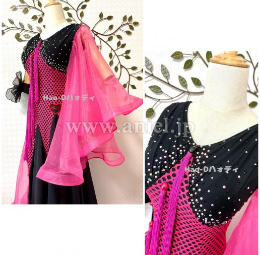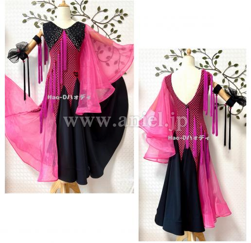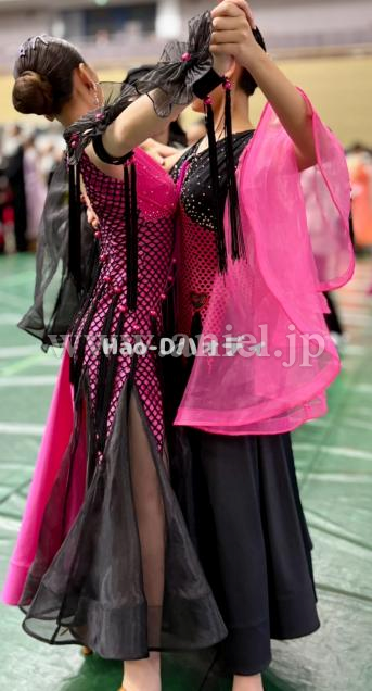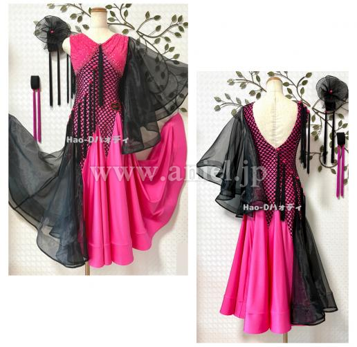 舞台映えするブラック&ピンクの個性的なペアドレス
