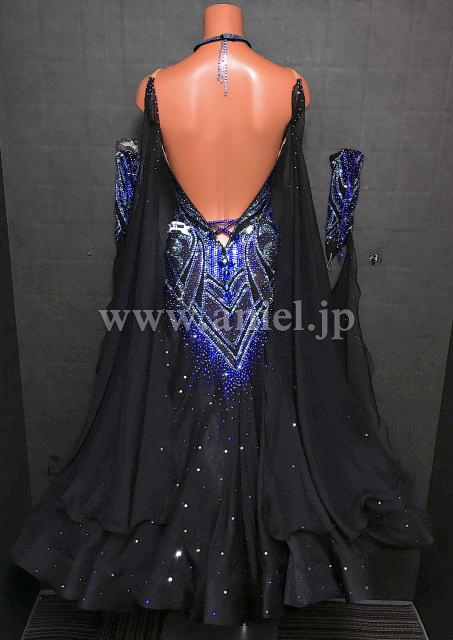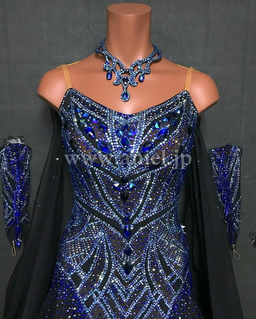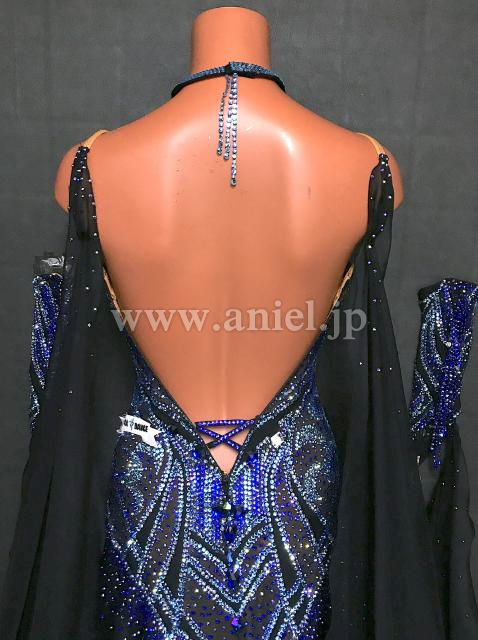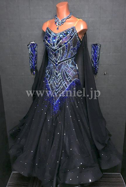 黒にブルーオーロラ、水色のストーンがたっぷりでゴージャスなドレスです。