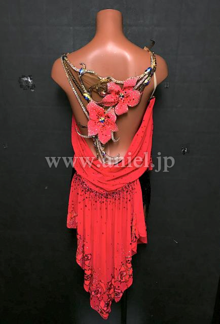 胸元や背中に大きなハンドメイドの立体モチーフが使われとてもインパクトがあります。