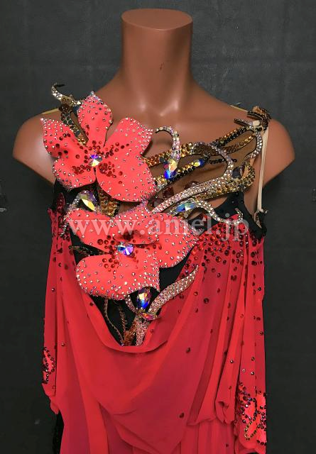 立体モチーフやストーンがたっぷり使われ非常に豪華なドレスです。