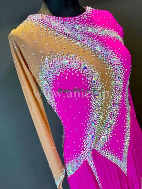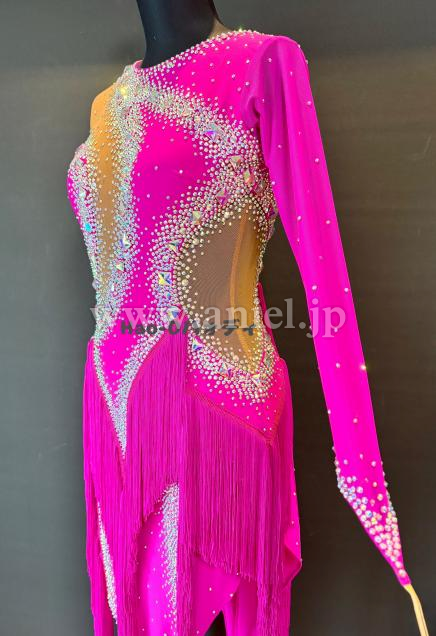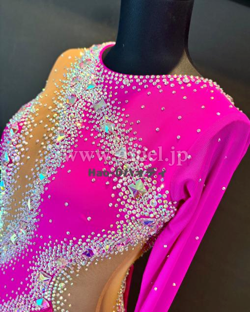 スリーブから腹部につなぐカールラインや、脇下にあるタンカラーのメッシュ切替は、ピンクの面積を減らしボディーを細く見せる