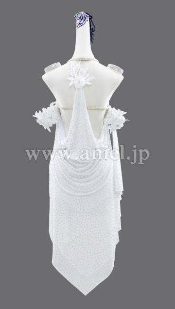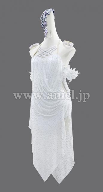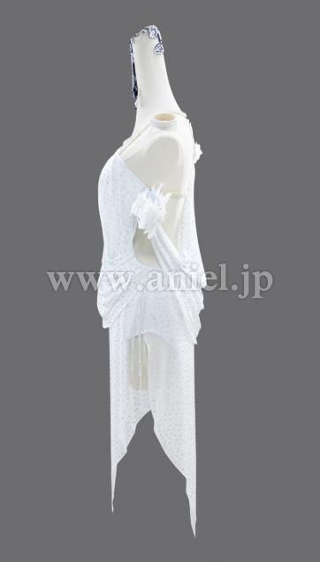 ドレープが踊る純白ラテンドレス。