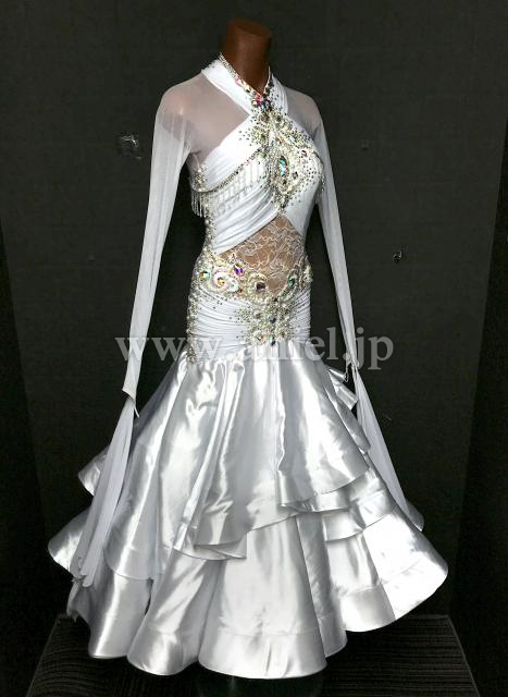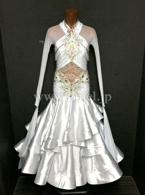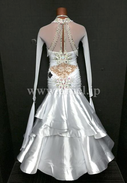 マーメイドデザインのサテンのティアードスカートが広がります。