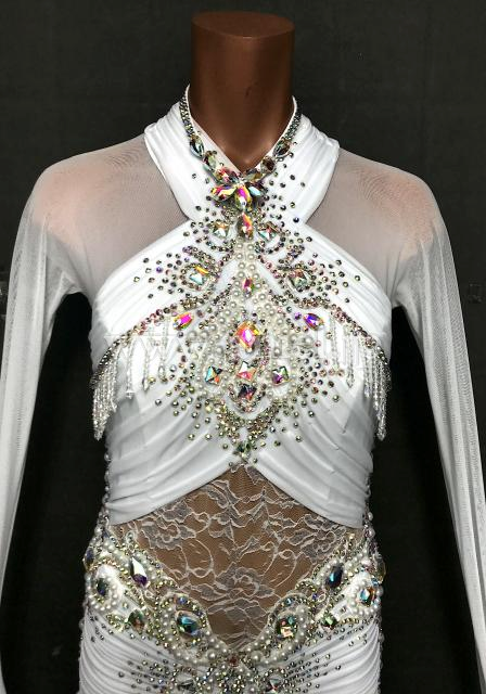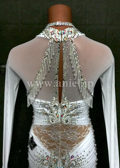 胸元クロスデザインでボディはメージュにレースが重ねられボディをスッキリ見せてくれます。