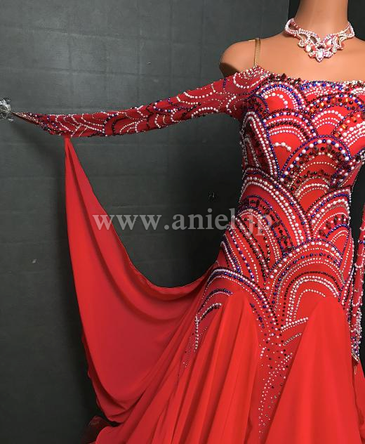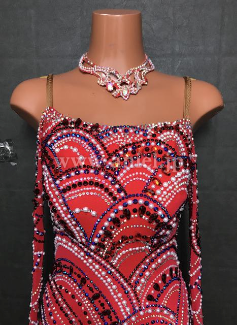 パール、ストーンがたくさん使われたアーチ模様が豪華なドレスです。