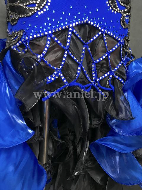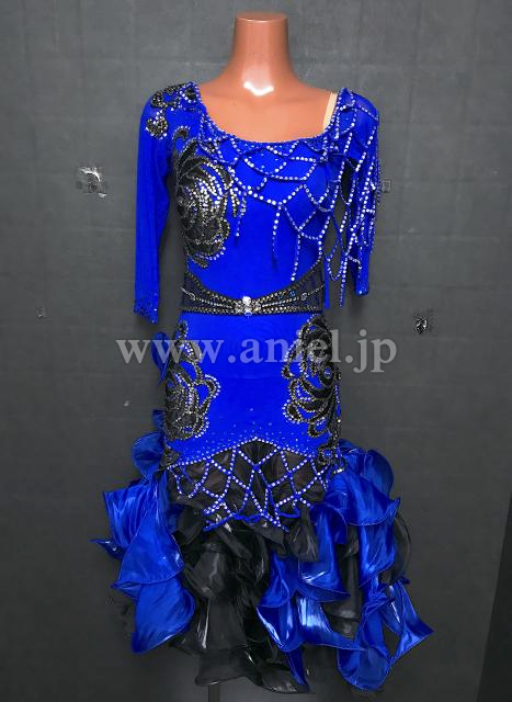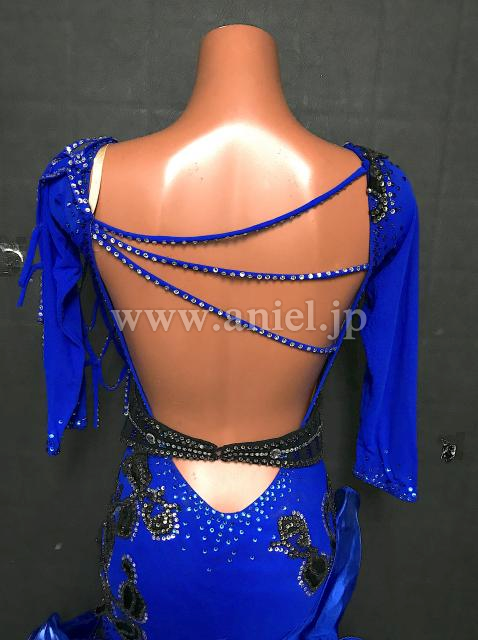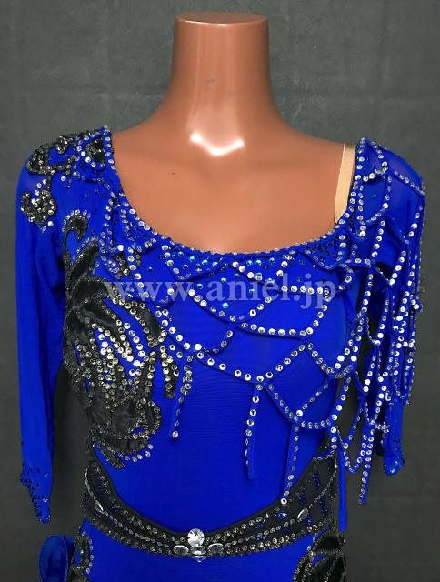 ロイヤルブルーに黒のモチーフがインパクトのあるドレスです。