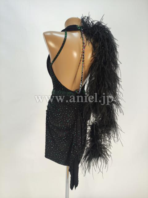 黒のミニタイトデザインに肩からファーが下がる上品でセクシーなデザインです。