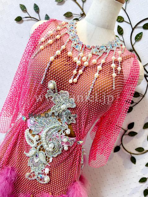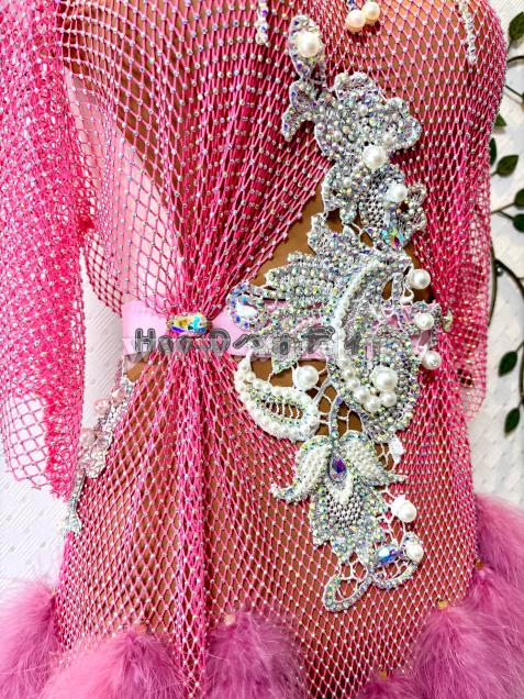 既にキラキラする身頃に、さらにパール&大小ストーンのモチーフを装飾し、よく目立ってとても豪華