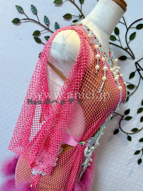 ストーン付きフェッシュネット生地&ファーを使用したラブリーなドレス