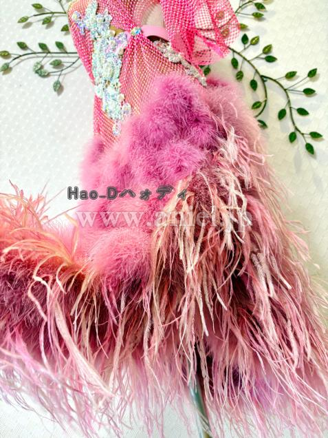 可愛いふわふわマラボータッセル数十個とボリューミーなオーストリッチ羽約3.6M、2種類のファーをミックスし、それぞれ違う動きあって、異なる雰囲気を見せてくれる