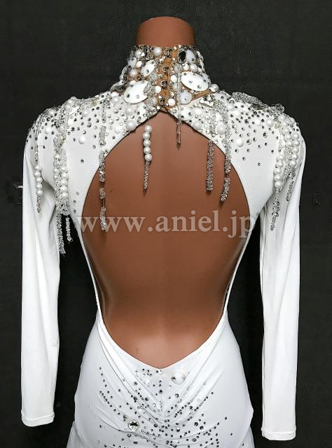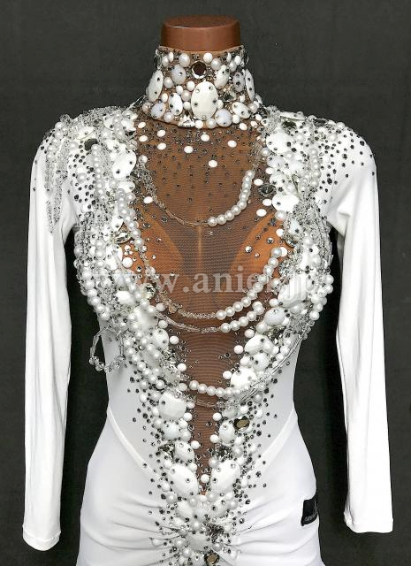 ビーズやホワイトカラーストーンがびっしりとゴージャスな装飾です。
